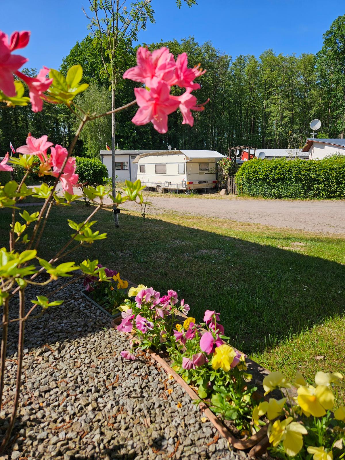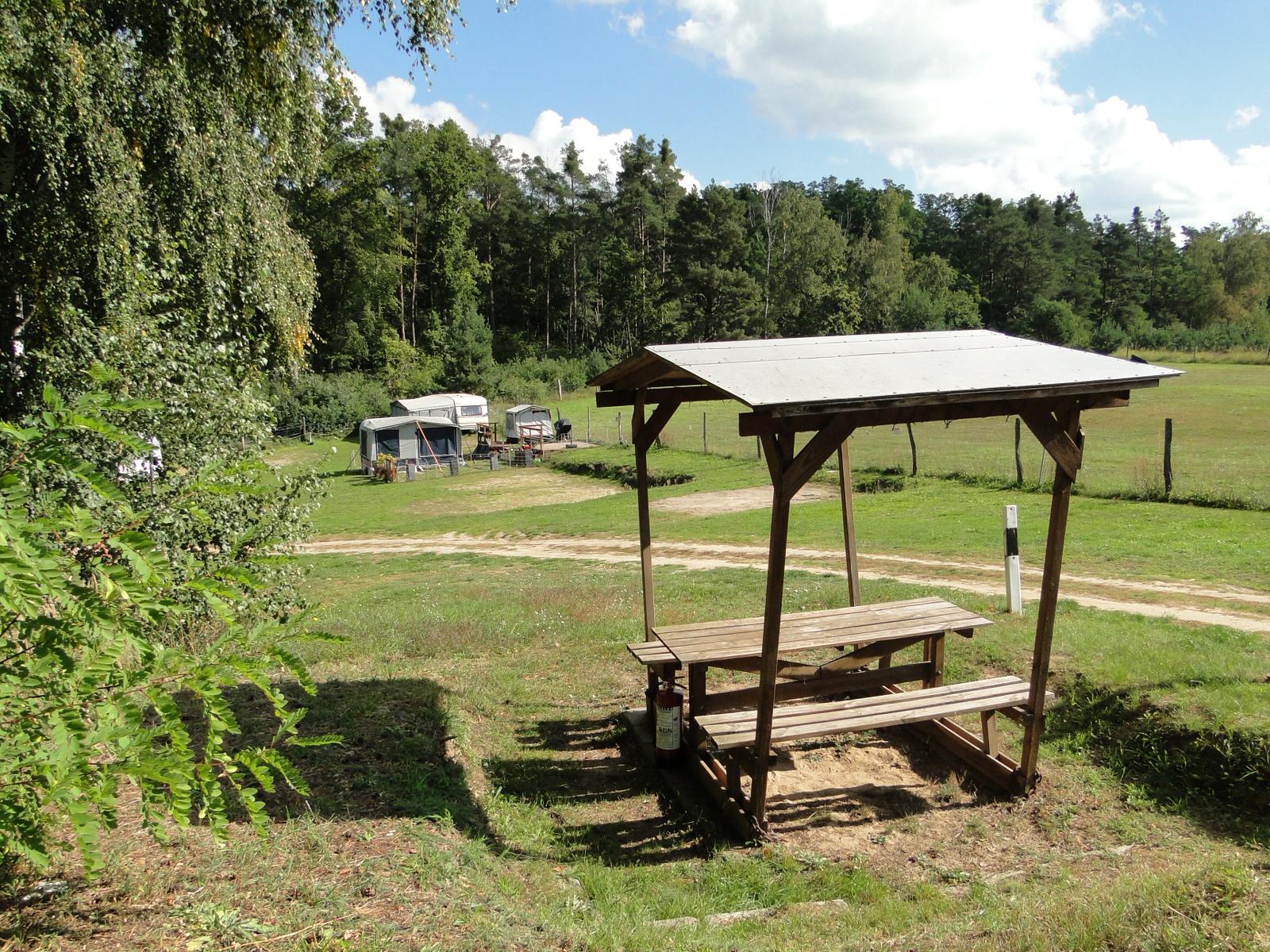 Unser kleiner Campingplatz liegt eingebettet um einen Wald und 3 Minuten zu Fuß zum Wusterwitzer See.